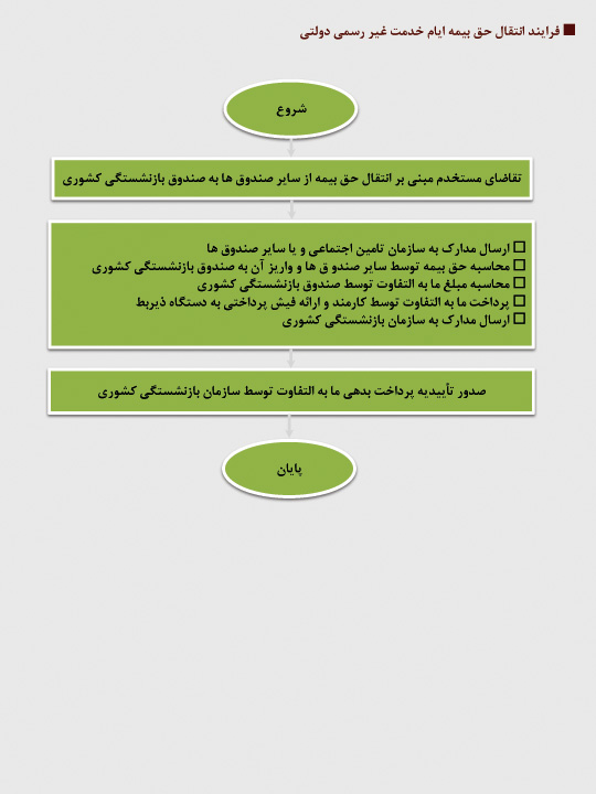 فرآیندها ارسال به دیگران نام شما ایمیل شما ایمیل دریافتکننده ارسال انصراف فرایندهای اداری انتقال حق بیمه سوابق غیردولتی بازنشستگی کادر قراردادی کار معین انتقال حق بیمه سوابق غیردولتی انتقال حق بیمه ایام خدمت غیررسمی دولتی بازنشستگی (کادر رسمی و پیمانی) مدارک تشکیل پرونده استخدامی(هیات علمی) مدارک لازم برای تعیین سوء پیشینه(تااطلاع ثانوی)